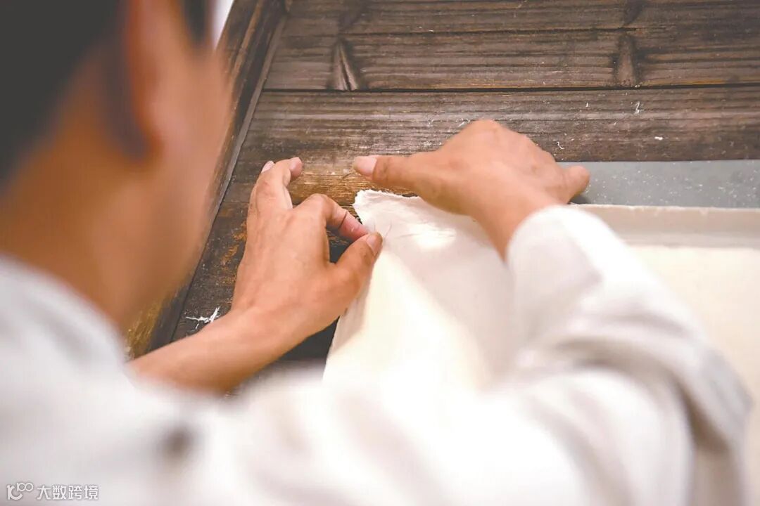 将潮湿的宣纸捻开,需要十足的功力。图片来源:安徽文明网