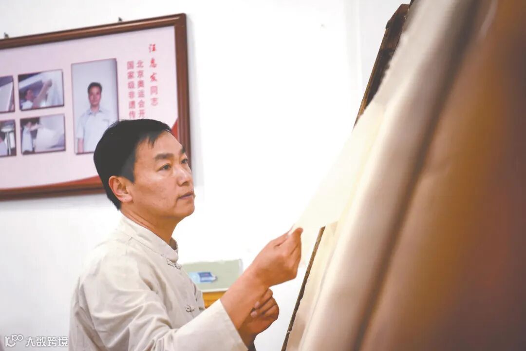 “晒薄纸”,也是毛胜利的得意之笔。上海博物馆为了修复宋代古画,需要一种古法制作的名为“奇绣”的极品宣纸,“薄如蝉翼洁如雪,抖似细绸不闻声”,厚度只有普通纸的一半。这么轻薄,牵纸的时候不能用手搓,只能用手指点。就这个“点”的动作,毛胜利苦练一星期,手指头都肿起来。“那个纸非常非常薄,刷子从纸上面过,就像拂过云彩。近千年前造纸工匠们的精湛技艺真是让人叫绝,我也特别自豪,‘奇绣’这一宣纸极品如今在我们手中复活了!”毛胜利说。