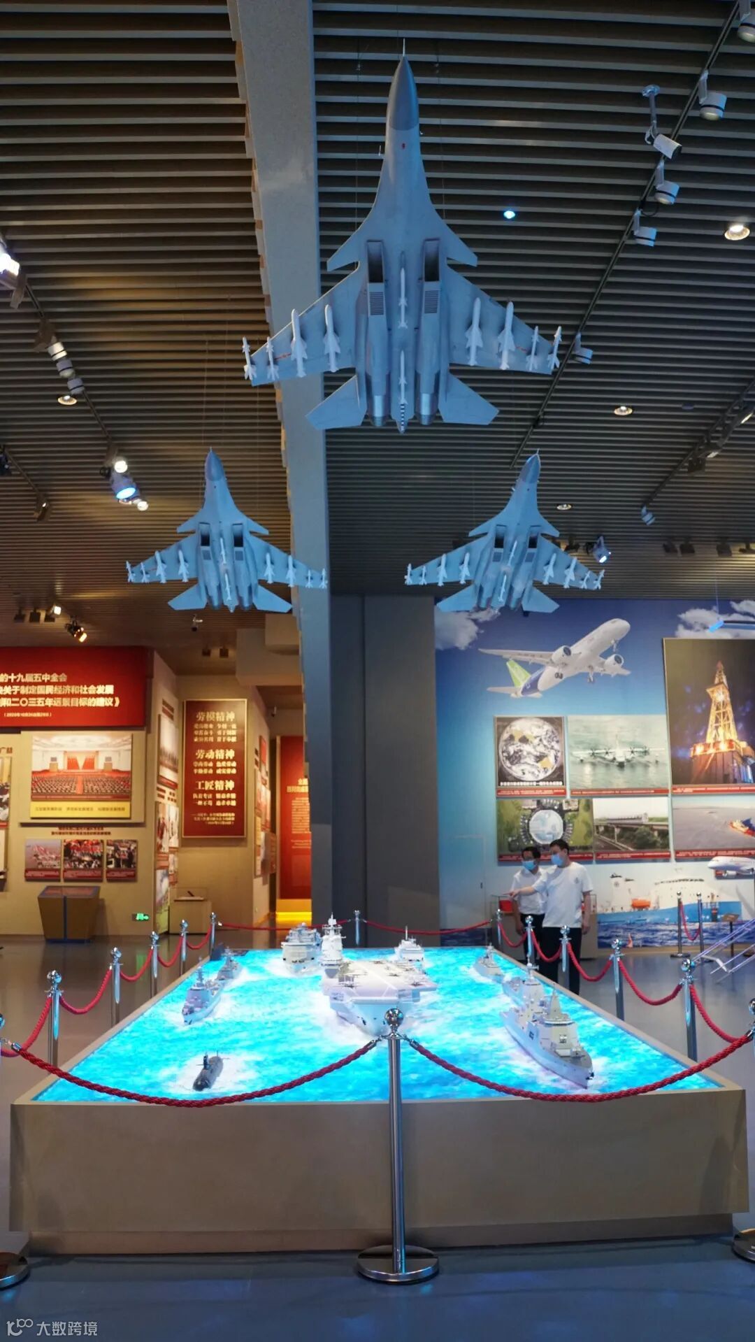 新落成的中国共产党历史展览馆,座落于北京奥林匹克公园,与古都北京壮美的中轴线遥相呼应,整个展馆雍容大气、气势磅礴、独具一格。主题展览共分为四大部分,通过2600余幅图片和3500多件套文物实物,全方位、全过程、全景式、史诗般展现中国共产党波澜壮阔的百年历程。其中,习近平总书记曾佩戴过的直10飞行员头盔,“航空报国英模”罗阳同志担任歼15舰载机研制现场总指挥时佩戴过的臂章,歼5、直10、歼20、运20、歼15和AG600等6型8架飞机模型,新中国第一台航空发动机实物,多次阅兵时航空装备飞越天安门广场上空影像画面,以及歼15在辽宁舰上首次起降、ARJ21飞机摄影、绘画作品等,或吊装、或陈列在展馆内,展现了党领导下的新中国航空事业发展70年来从无到有、从小到大的艰辛历程和取得的卓越成就,体现了几代航空人不忘报国初心、勇担强国使命的忠诚担当。