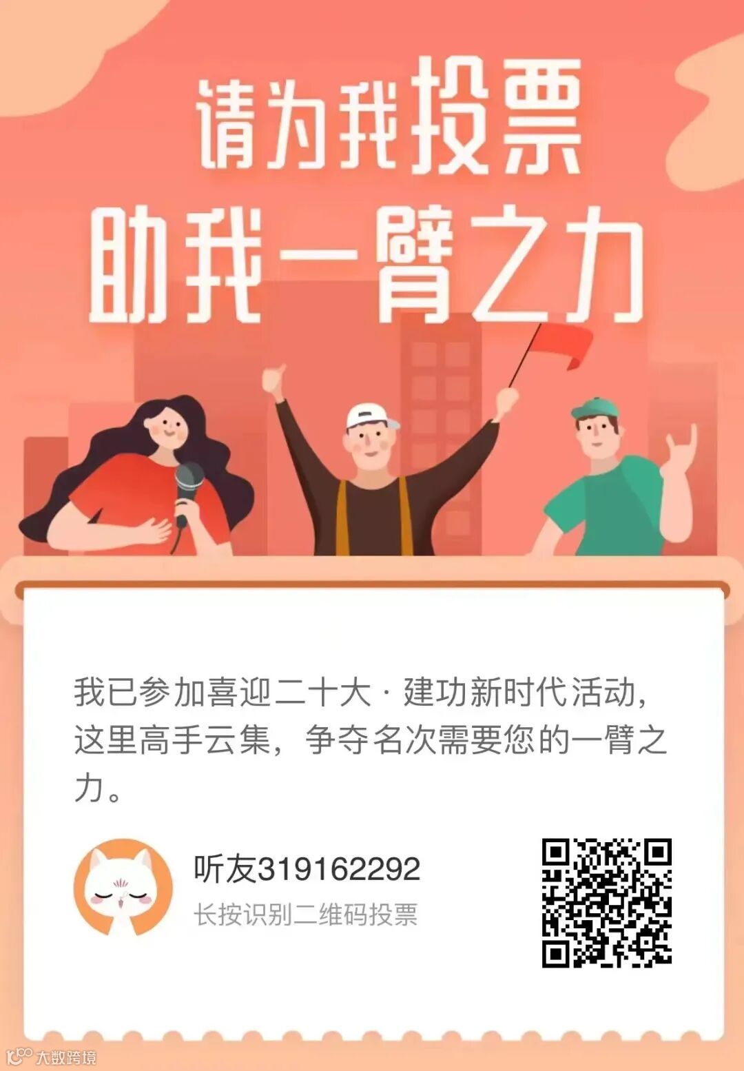 听的过程请扫描下方二维码,为你喜欢的讲书人投上宝贵的一票,让他/她发光发彩。