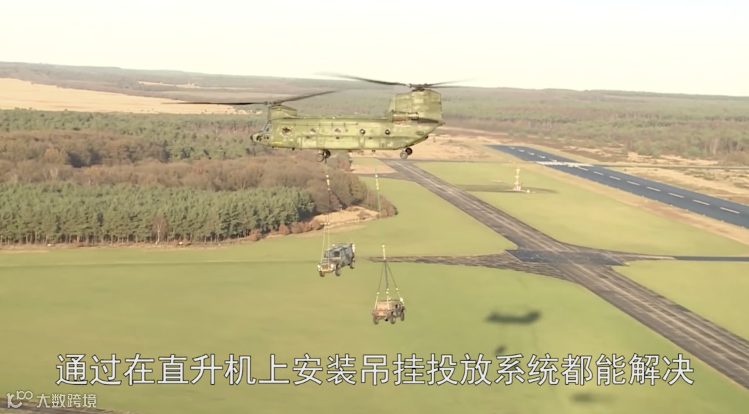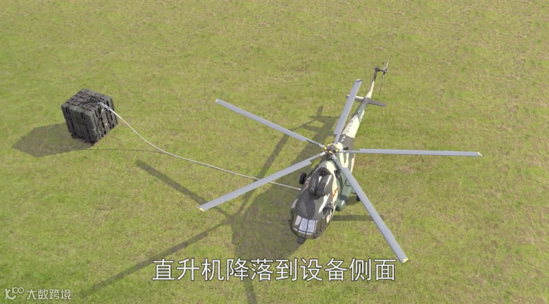 通常在货物着地后,直升机降落到设备侧面,打开货物挂钩进行投放。