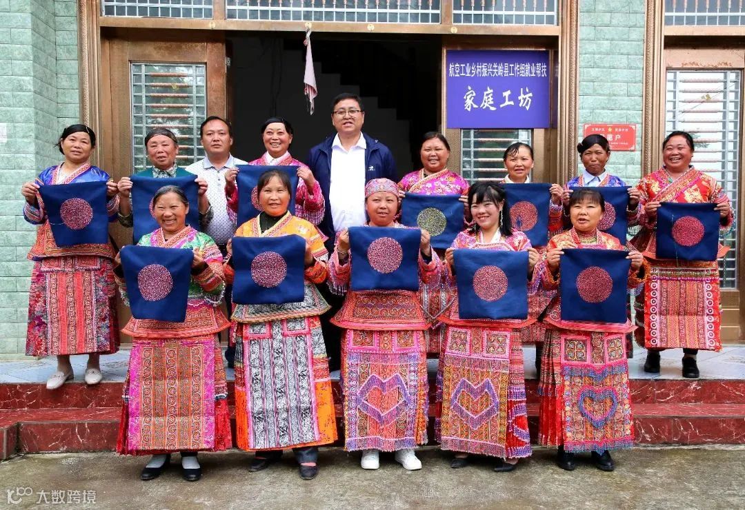关岭县是航空工业的定点帮扶县之一。多年来,航空工业针对当地自然及经济条件,因地制宜推出了八项帮扶举措,在关岭县工作组和派驻副县长的推动下,依托航空工业引进的荣瑷服饰加工厂,探索建立了加工厂+乡镇车间+家庭工坊的就业帮扶模式,把加工厂建到县城、把生产车间搬到乡镇、把生产资料发到农户,在解决当地易地搬迁群众和脱贫人口就业的同时,兼顾了农民群众农忙和闲暇时间。来自航空工业所属的中航重机、安吉精铸等单位也先后在当地设立了定点产业帮扶示范点,多批次采购了当地累计价值10万余元的苗绣文创产品。
