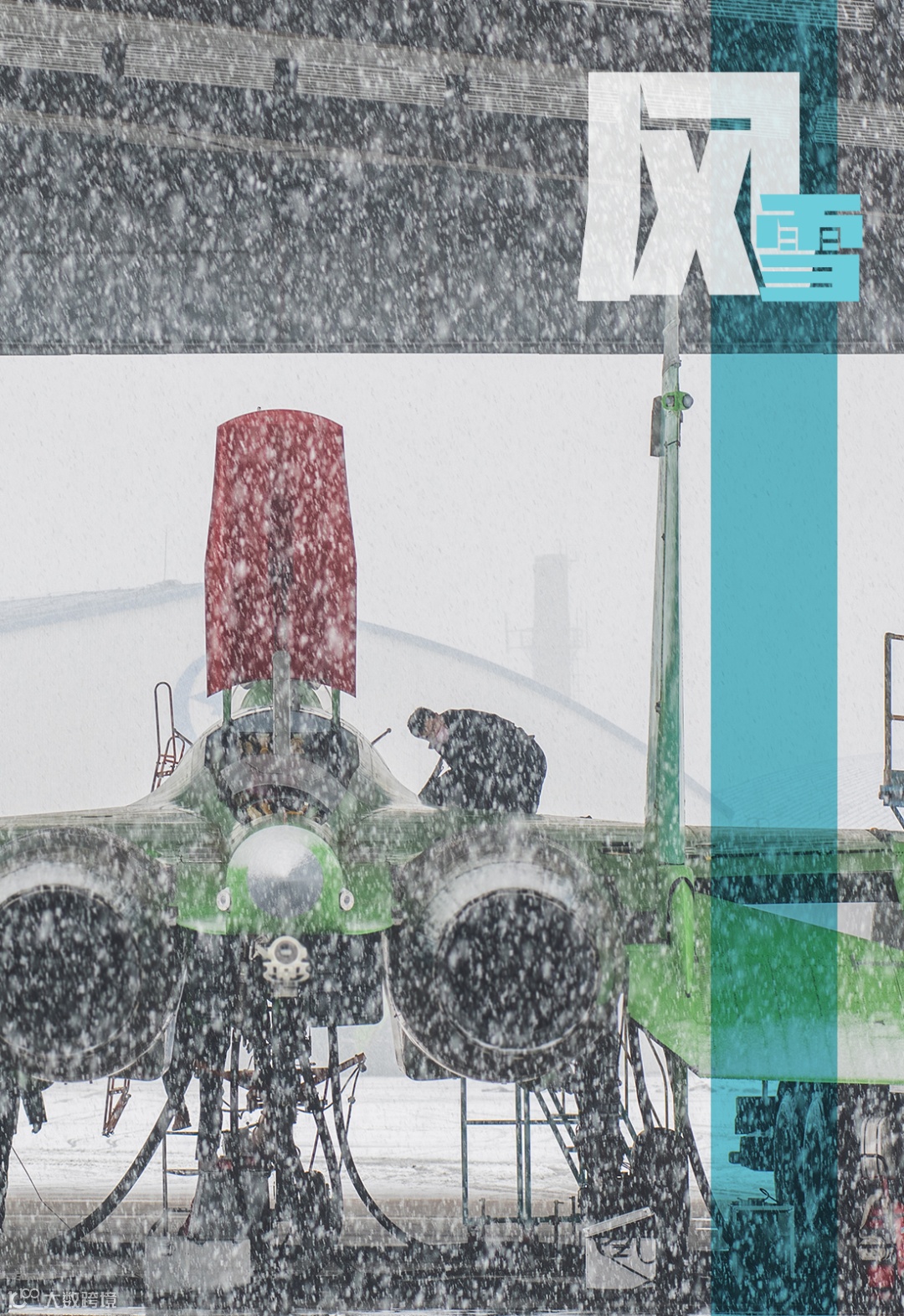 2020年2月21日,航空工业沈飞外场,工作人员冒雪维护战机。