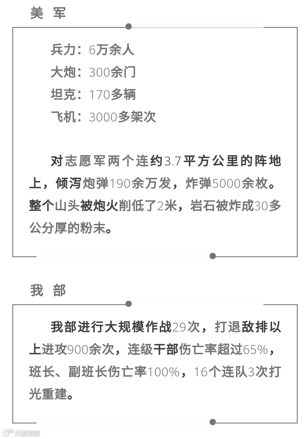 战役打响前,美方计划伤亡人数为250人,然而他们万万没想到,在历时43天的上甘岭战役中,美军先后投入6万余人的兵力,并在这个小山头上付出了2.5万人的伤亡代价。
