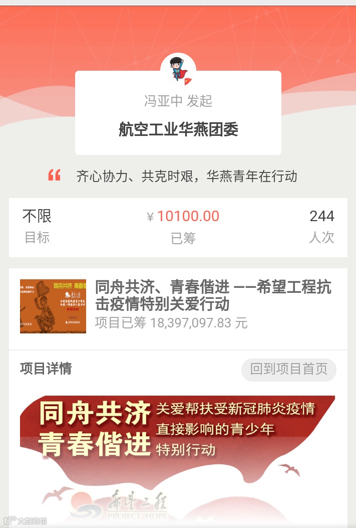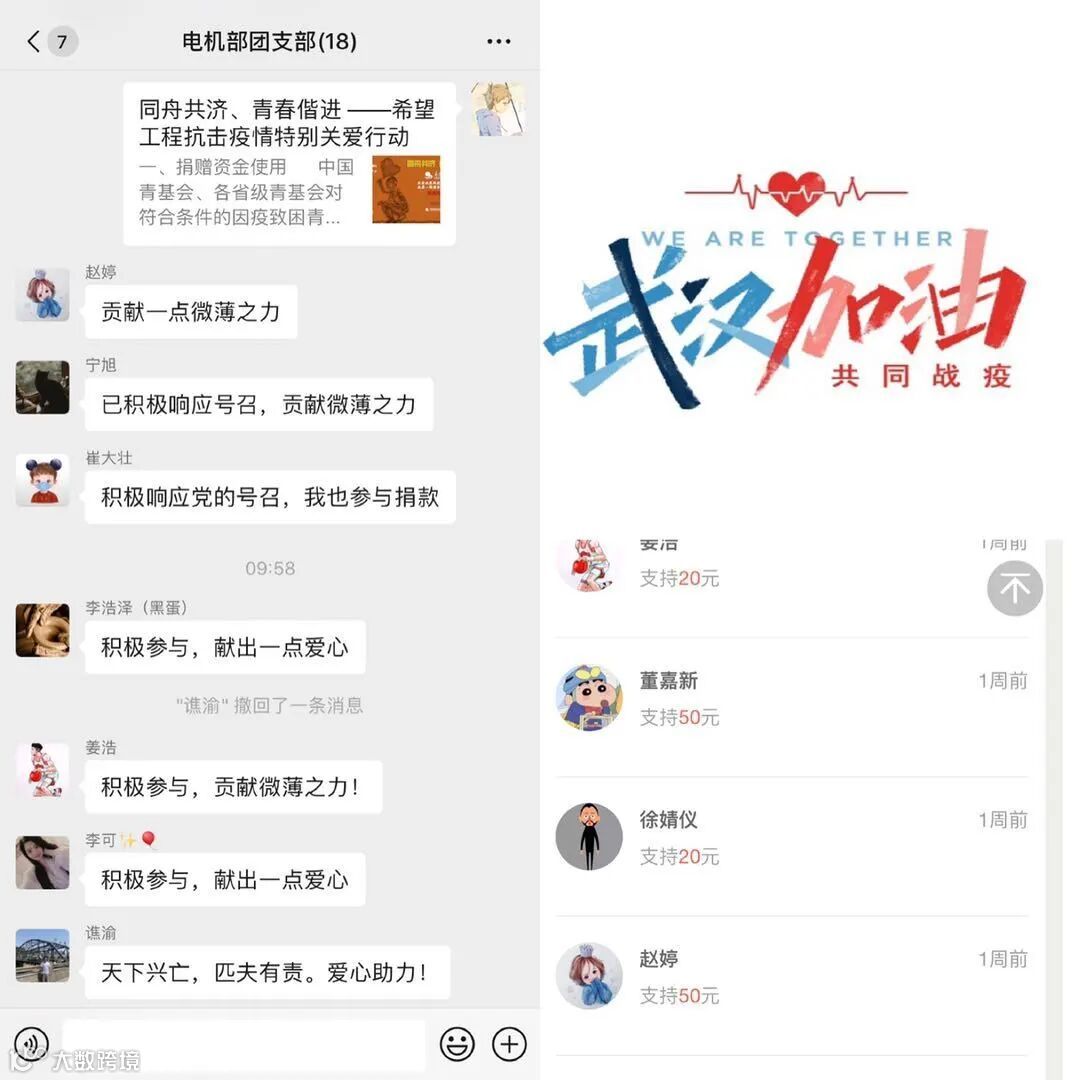 面对疫情中受困的青年同胞,华燕团员青年纷纷伸出援手,捐赠帮困资金10100元。“贡献一点绵薄之力”“我也捐一点”“一方有难,八方援嘛”......一句句质朴的话语,彰显着航空青年“心系祖国、心系同胞”的家国情怀。