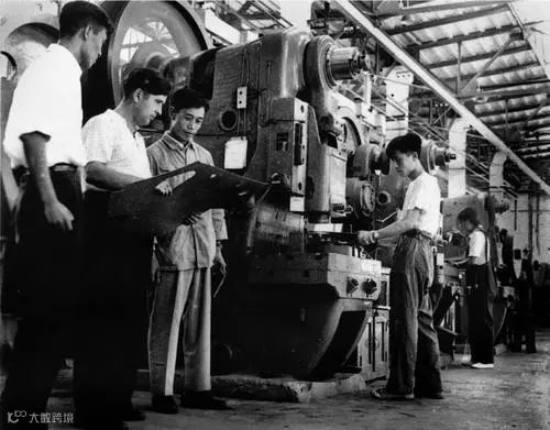 零件车间干部工人在生产一线向苏联专家学习先进技术