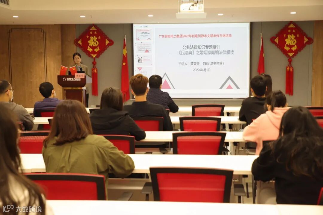 4月1日,为增强集团员工法律意识,保障自身合法权益,积极参与河源市创建文明单位活动,锦泰电力集团开展了《民法典》婚姻家庭编法律知识讲座。