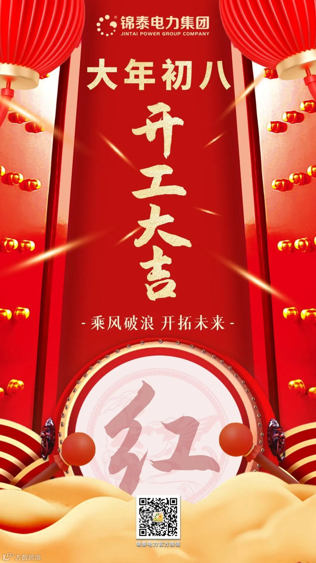锦泰电力集团大年初八正式开工,让我们携手并肩扬帆起航,带着对电力事业未来的美好憧憬,开启新的征程,为社会可持续发展战略贡献力量。