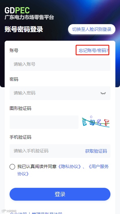 点击“忘记账号/密码”