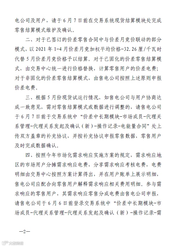 根据2021年6月2日广东电力交易中心发布的《关于5月份现货结算试运行零售结算注意事项的通知》(广东交易〔2021〕95号),5月份零售结算中各地市供电局采用现货顺价模式出具电费结算单,其中不再体现原价差模式下的“直购电费”或“退补电费”等名词及数据,而用“能量电费”进行替换。
