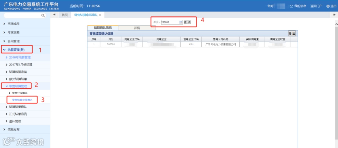 网址,并通过点击“现货结算模块—月结算正式结果查询”的相关路径查看电能量电费,可导出新的月度结算单(如图1所示)。这样您就可以得到