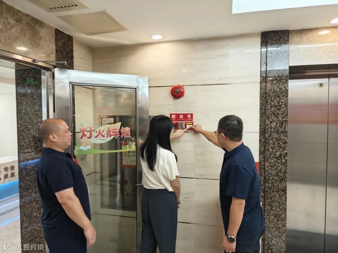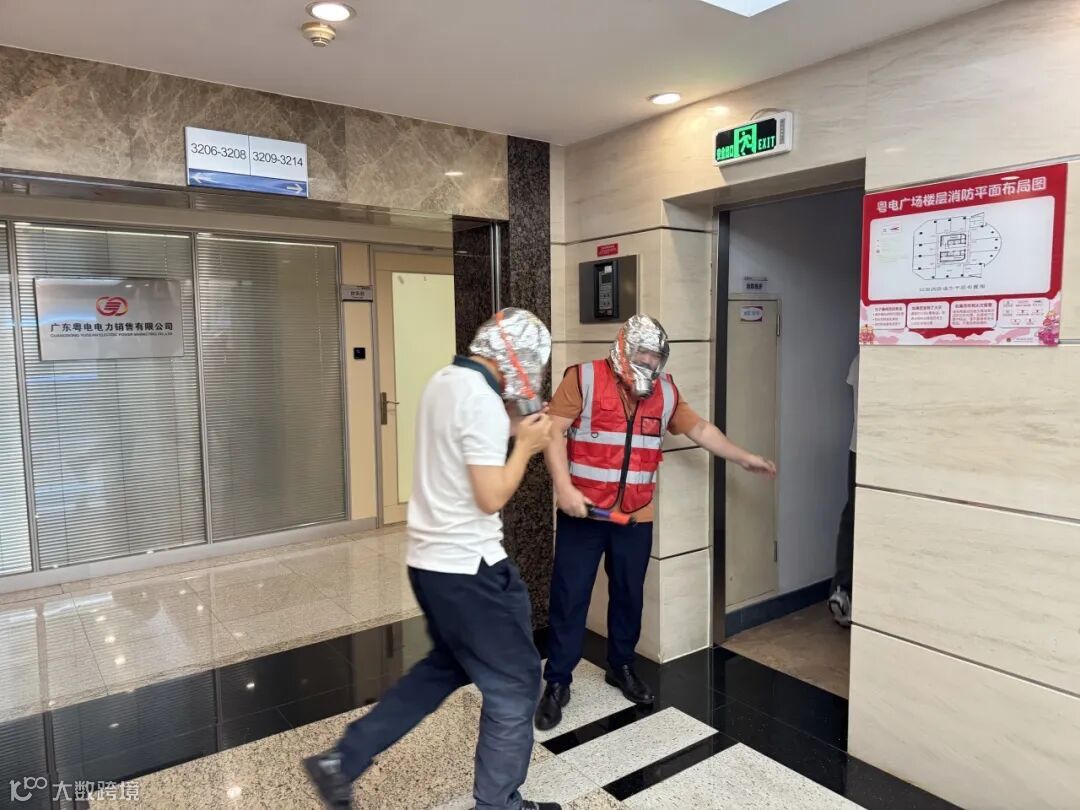 同日下午开展“双盲”应急演练,模拟办公楼突然起火,现场组织相关人员有序进行疏散逃生。