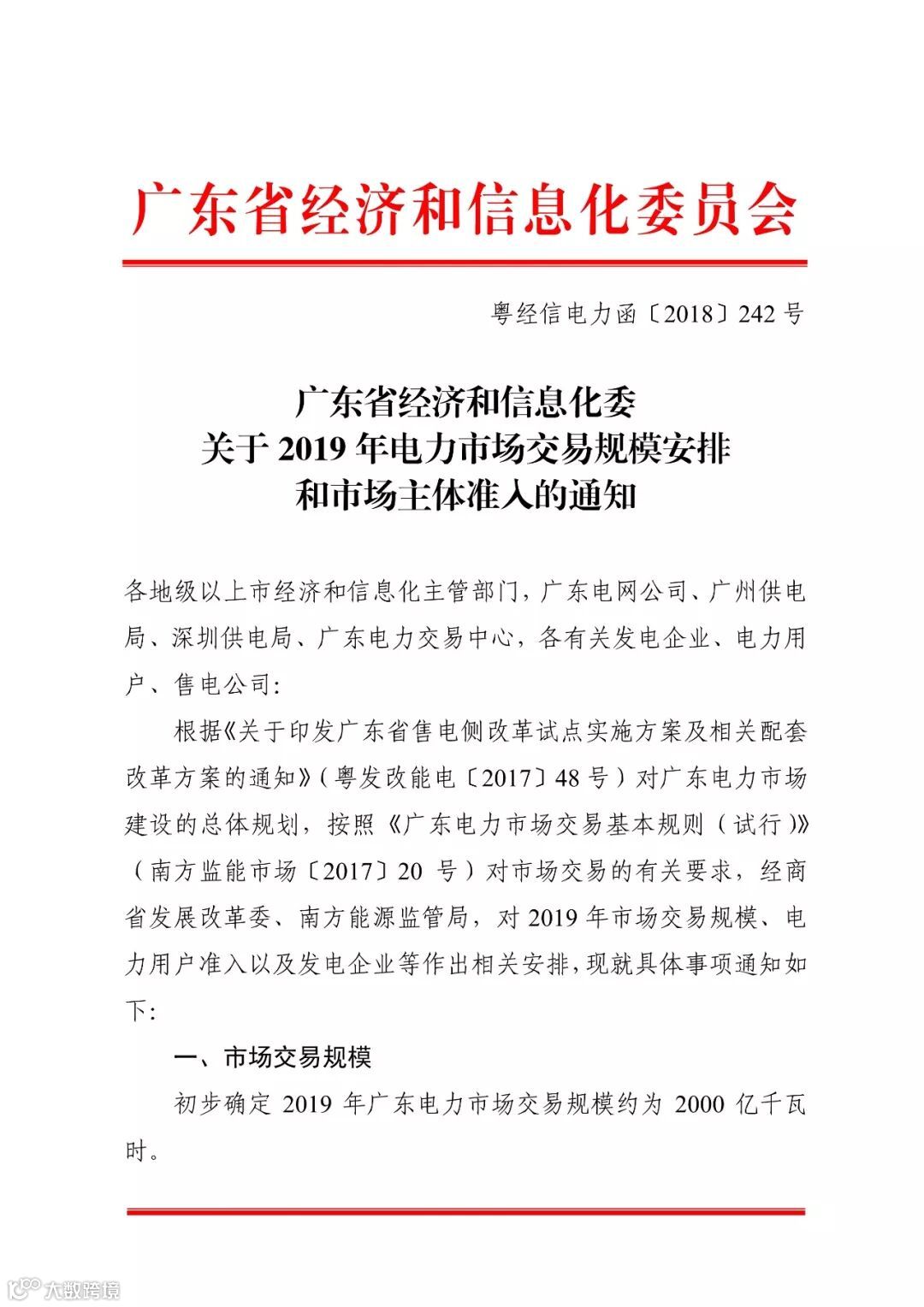 2000亿!广东经信委发布《关于2019年电力市场交易规模安排和市场主体准入的通知》,确定2019年交易规模以及市场准入门槛。