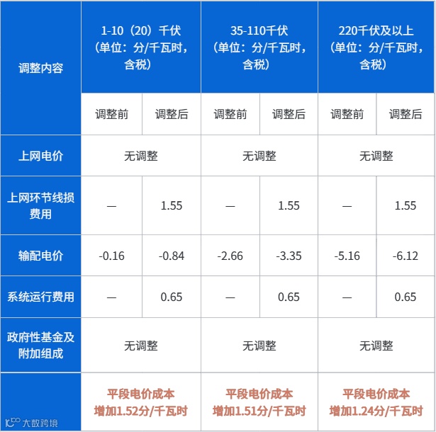 基本电价及输配电价调整