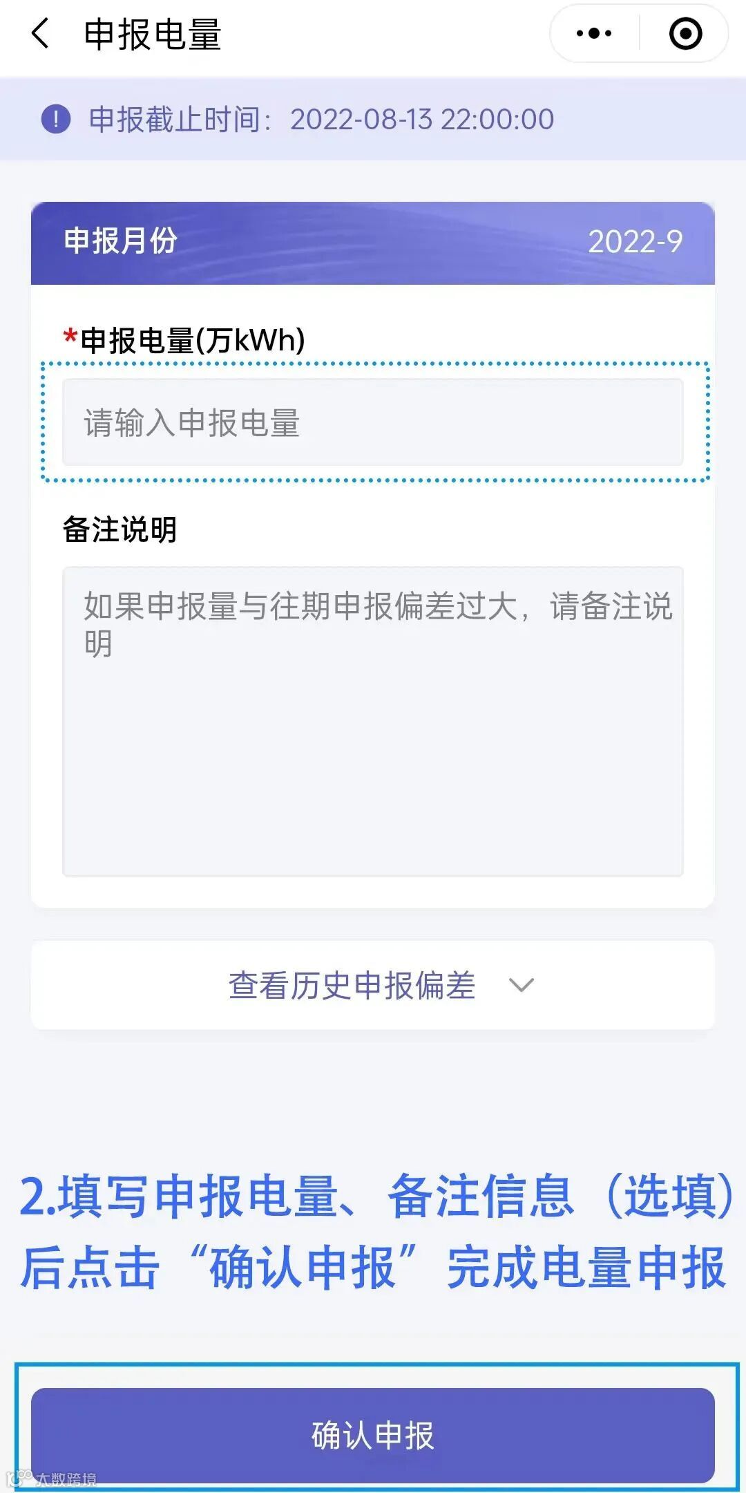 电量单位:万千瓦时(例如申报电量“10000千瓦时”,则填写数字“1”);