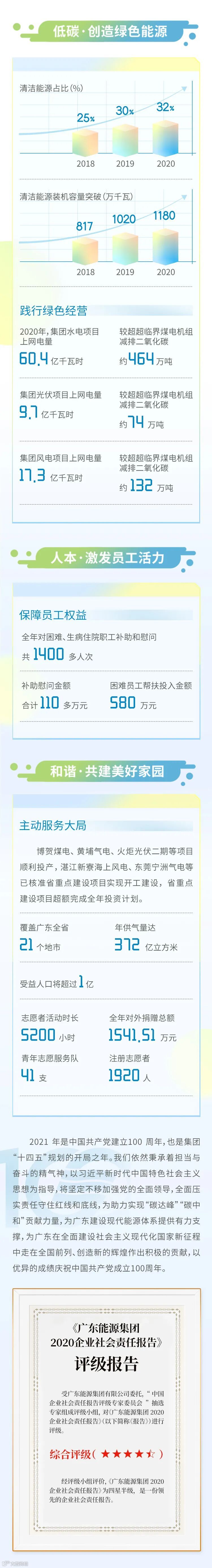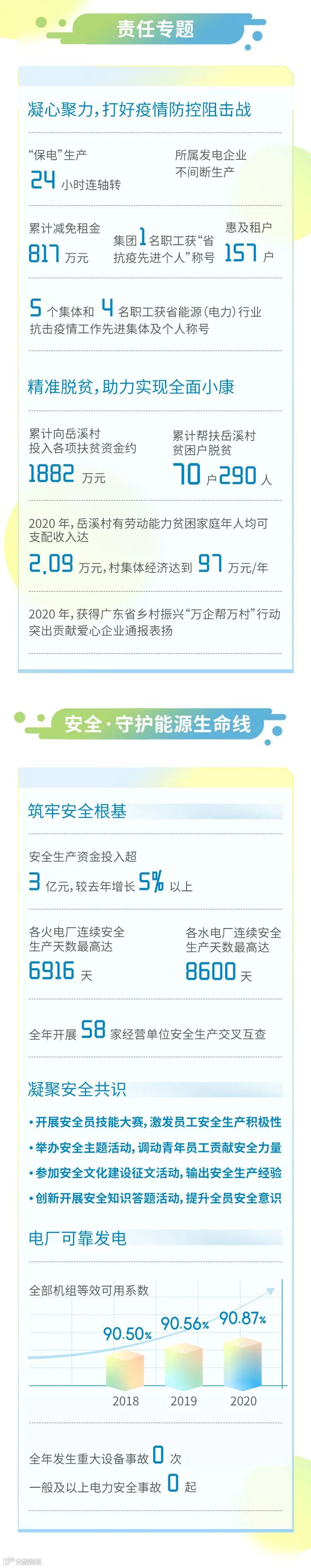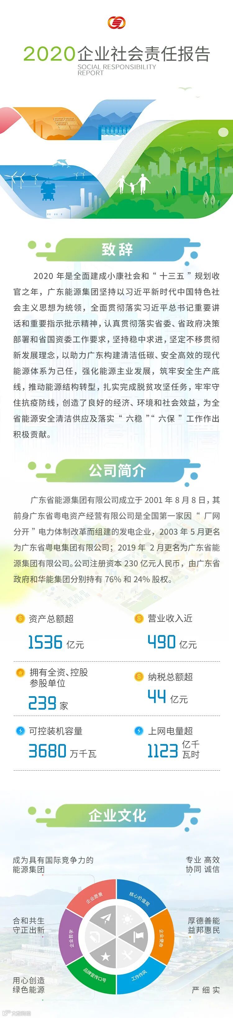《广东能源集团2020年企业社会责任报告》正式发布了!这是集团发布的第十一份年度社会责任报告。报告从安全、高效、低碳、人本、和谐五个维度,涵盖了公司对社会责任关键议题的实践及管理方法,展现了公司2020年社会责任工作绩效。下面,让我们通过一张长图速览报告要点。