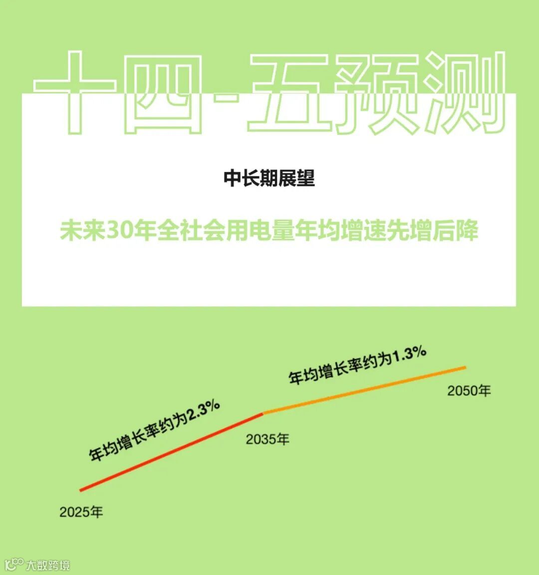 全社会用电量方面,预计2035年、2050年我国全社会用电量分别达到11.6万亿、14.1万亿千瓦时,2025-2035年年均增长率约为2.3%,2035-2050年年均增长率约为1.3%,用电量增速呈逐步下降趋势。