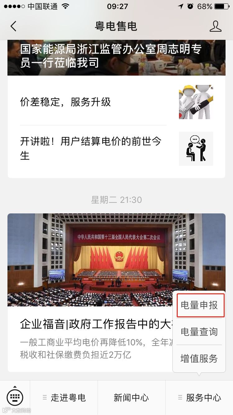 1.关注我司公众号“粤电售电”,从公众号的“服务中心-电量申报”菜单申报,具体申报流程请参考操作指引;