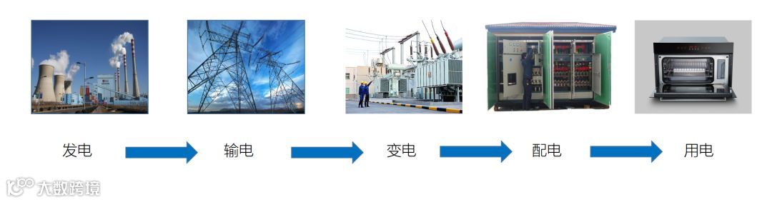 3、配电系统:在消费电能地区内将电力分配至用户的中低压输电系统,直接为用户服务。类似于快递员完成的最后一程配送。