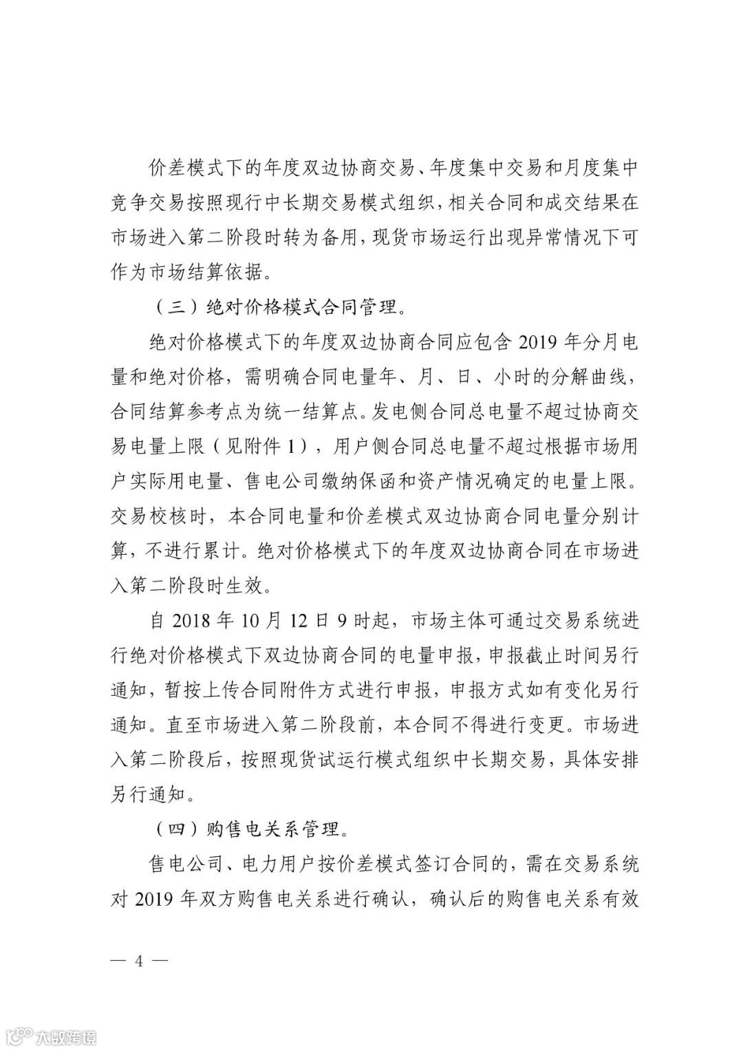 文件对电力市场的切换做了相关规定,绝对价格模式下的年度双边协商合同在市场进入第二阶段时生效。2019年在电力现货模拟运行顺利时,市场将进入第二阶段。现阶段售电公司在征战长协时,仍需考虑绝对价格下的购售电合同模式,以便顺利过渡至市场第二阶段。