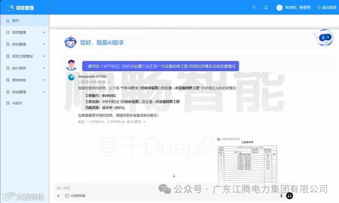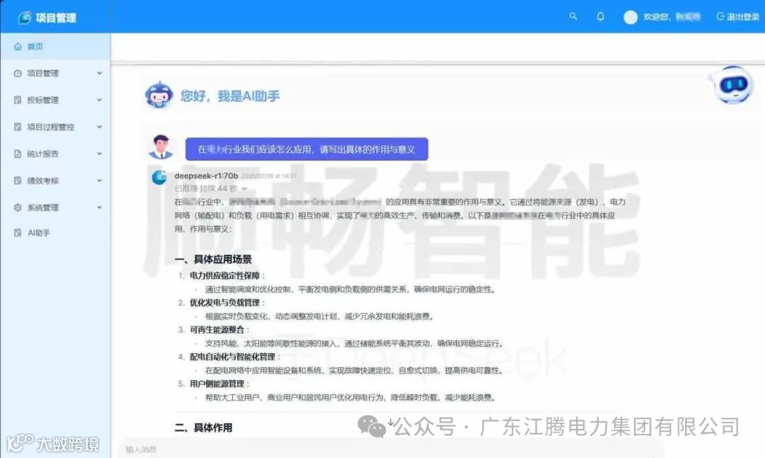 今年春节前,广东顺畅科技有限公司成功完成了DeepSeek全栈私有化部署。