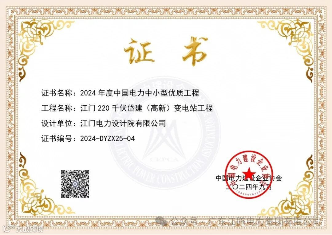 喜获2024年度中国电力优质工程奖