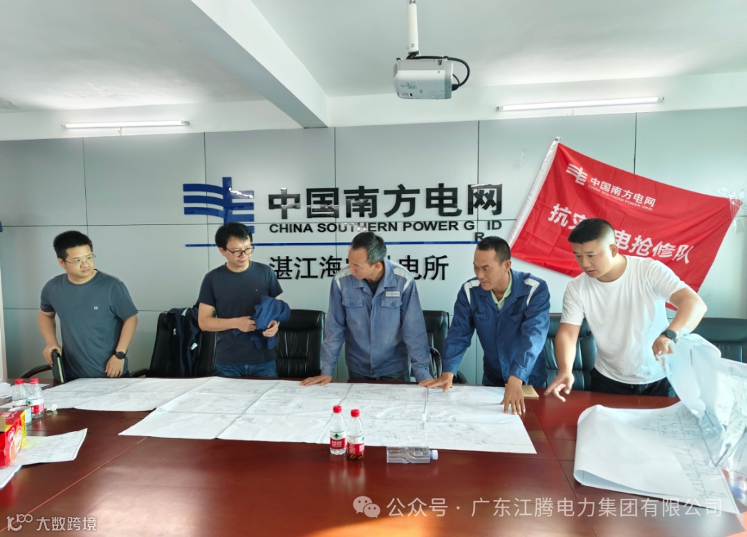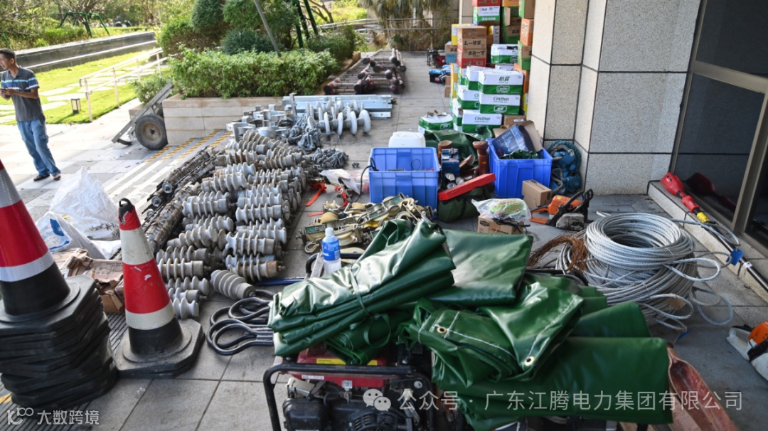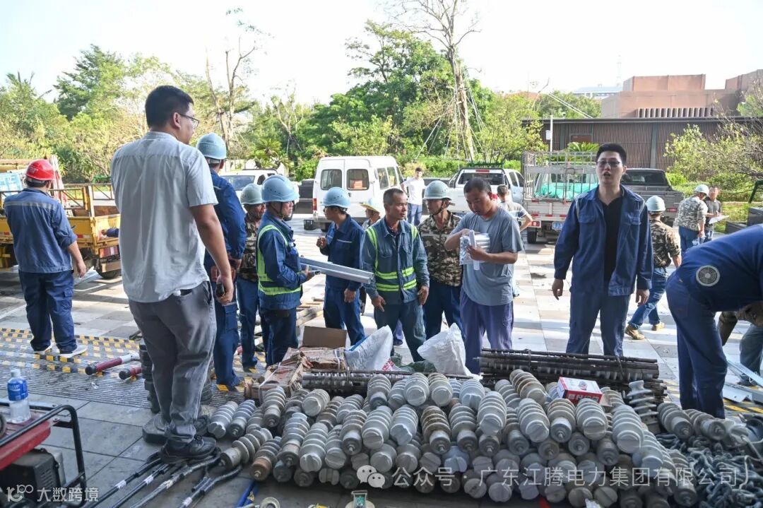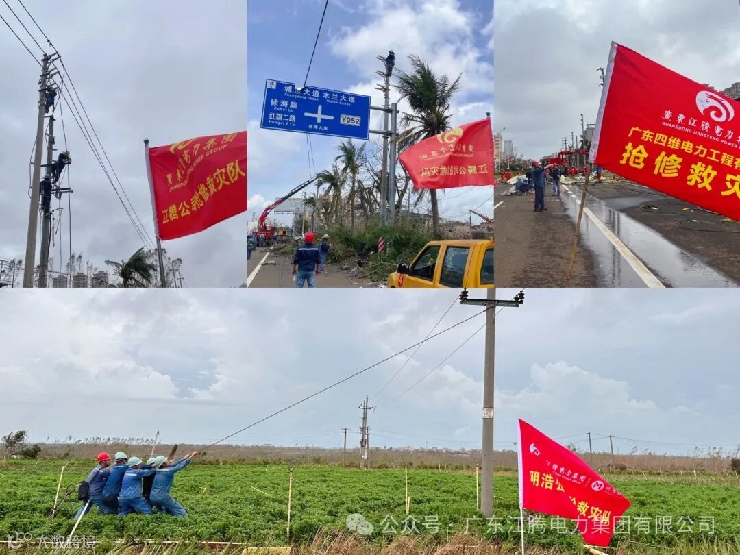 江腾电力集团加大支援力度,从江门本部新增调配158人、 41辆车的应急队伍驰援湛江徐闻,当天徐闻战场超500人开展现场作业。
