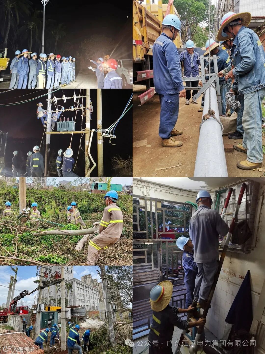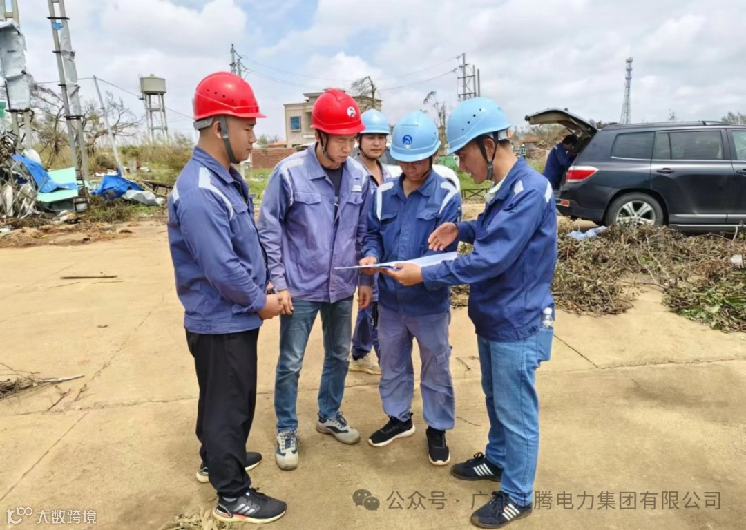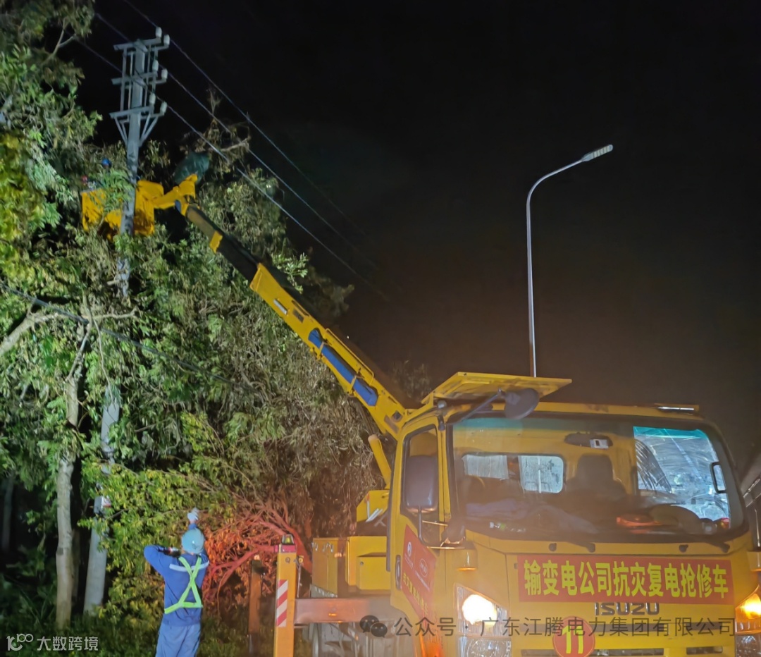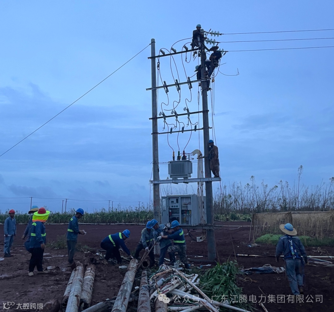 江腾电力集团加大支援力度,从江门本部新增调配158人、 41辆车的应急队伍驰援湛江徐闻,当天徐闻战场超500人开展现场作业。