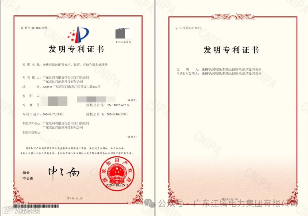 近日,广东宏达兴能源科技有限公司与江门供电局联合研发的“光伏容量的配置方法、装置、存储介质和处理器”荣获国家发明专利授权,这一成就标志着宏达兴公司在光伏技术发展上又向前迈进了一步。