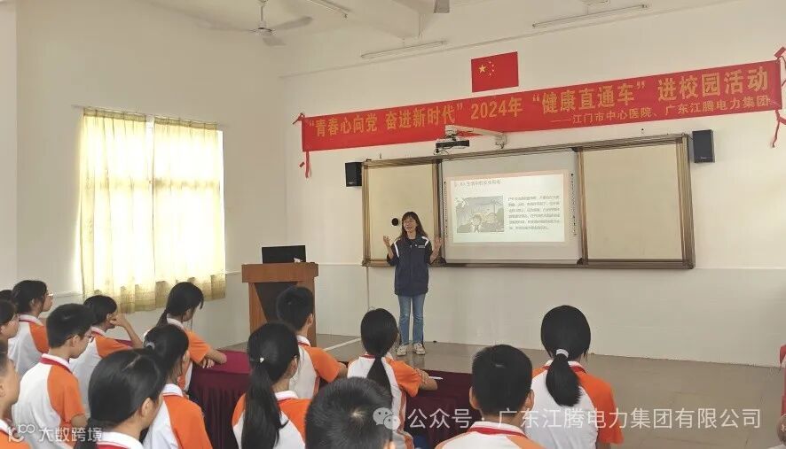 江腾团委联合江门市中心医院团委走进开平市思始小学,开展“青春心向党 奋进新时代”进校园活动。通过向学生捐赠书籍、植树护绿,为学生开展用电安全知识科普活动,提升团员青年主动承担社会责任意识,为构建和谐社会贡献青春力量。