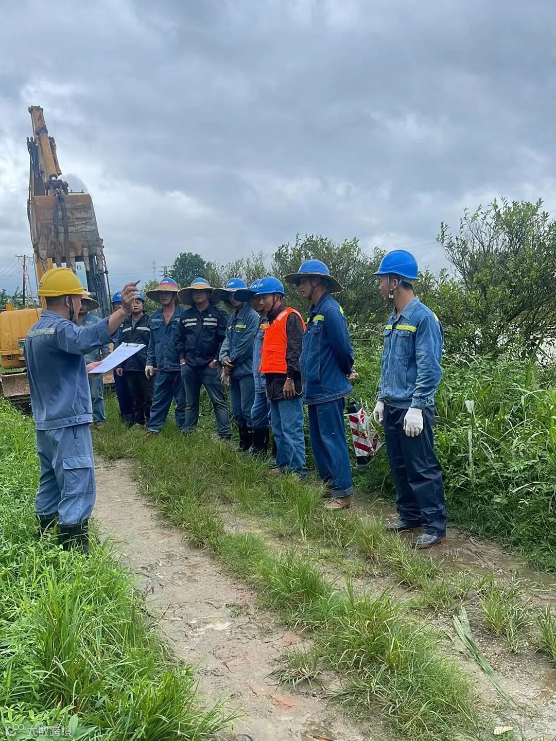 台风过后,明浩公司抢修人员抢修复电前在进行安全交底