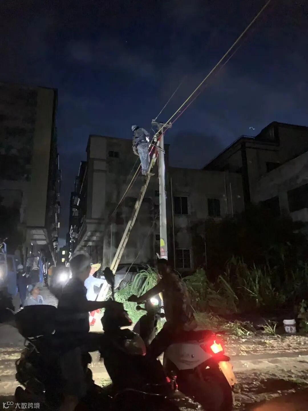 漆黑的天空下,湛江抢修复电现场一幢幢高楼只见轮廓、不见灯光,其中一个抢修点驻足了祈盼复电的村民,他们集体见证了光明使者的专业和高效。