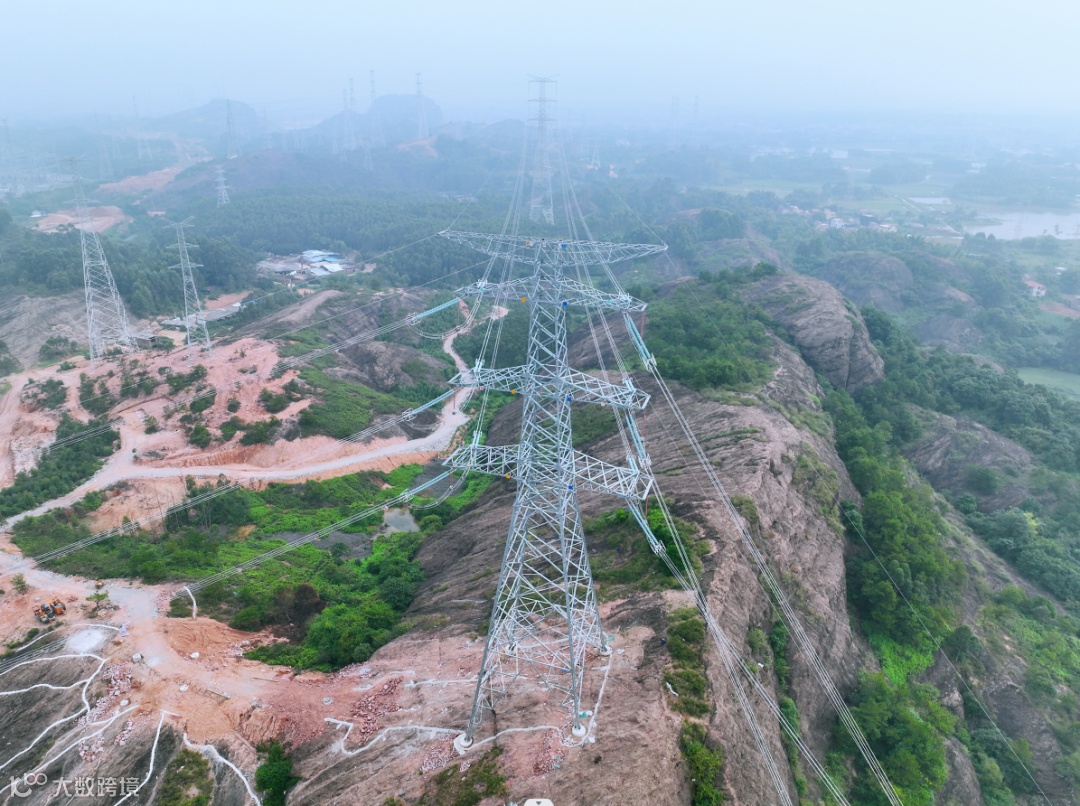 2023年12月1日,在清远市石角镇山岭之间,一条条崭新的银色导线跨越崇山峻岭,随着最后一根导线在500千伏花振丙线#1号塔挂线完成,标志着江门市电力工程输变电有限公司承建的广东珠西南外环配套500千伏线路工程(清远段)正式实现全线贯通。