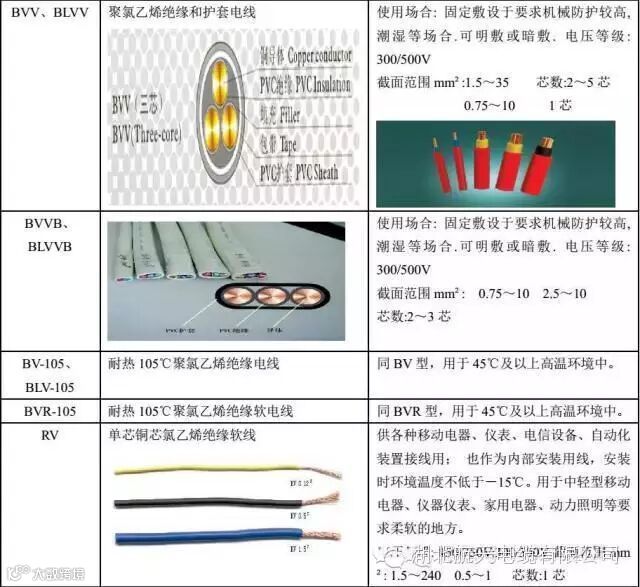 电线电缆规格型号说明、用途及载流量计算表