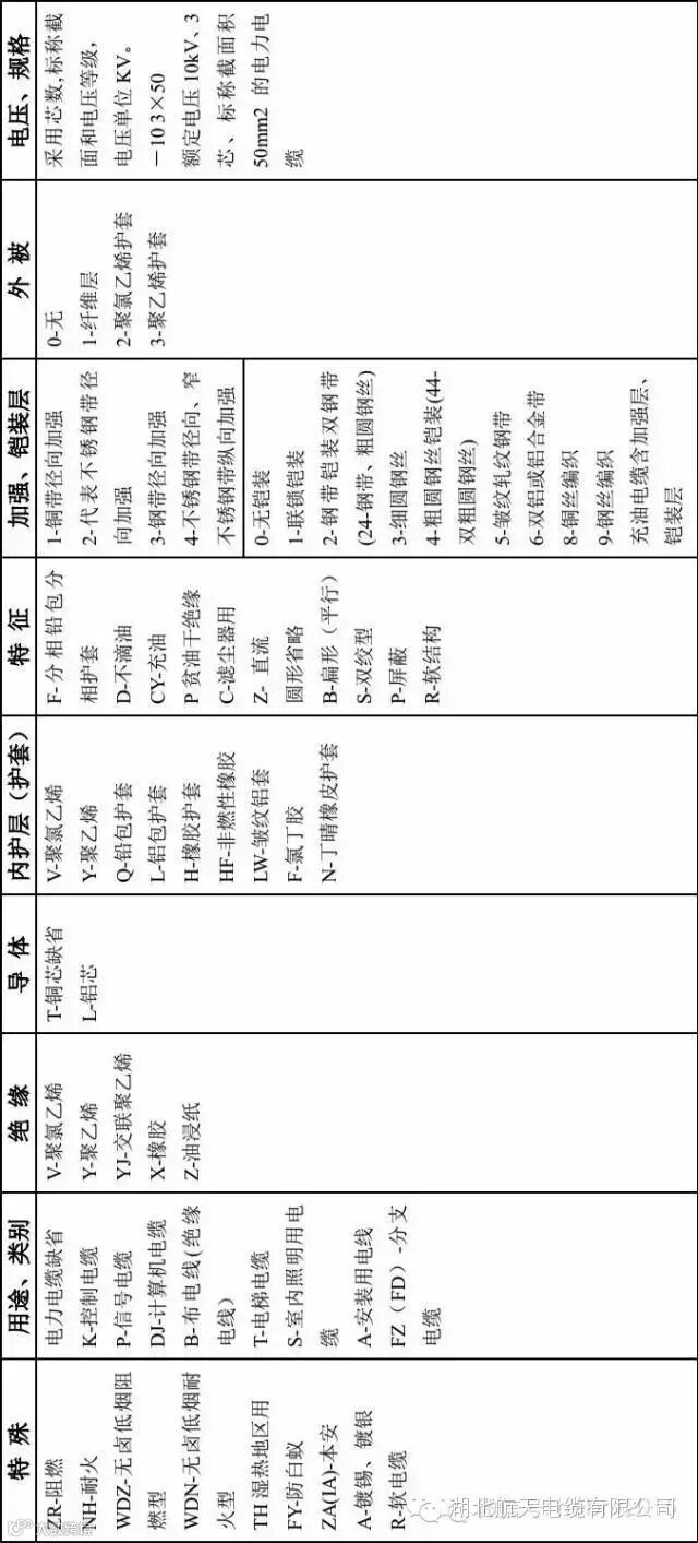 电线电缆型号组成表