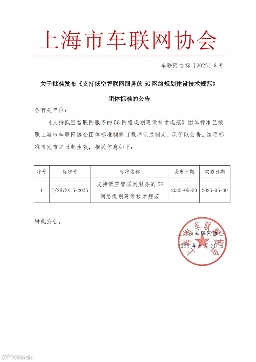 自1月20日启动编制工作以来,经历了行业集中编制、封闭编制、公开征求意见、技术审查等环节,经过编制组所有专家以及各相关单位的共同努力,历时四个多月完成标准编制全部环节。5月30日,团体标准由上海市车联网协会正式发布。它的发布,是政府主管部门、通信相关单位、民航相关单位、高校科研机构、卫星互联网单位以及产业各界齐心协力的成果,不仅为上海市低空智联网的建设和低空经济高质量发展提供了坚实的技术支撑和规范指引,也为全国低空经济领域的标准化建设贡献了“上海智慧”。