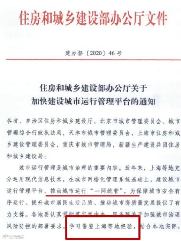 政策支持,2021年住建部发文《全面加快建设城市运行管理服务平台》,之前明确提出学习上海经验;