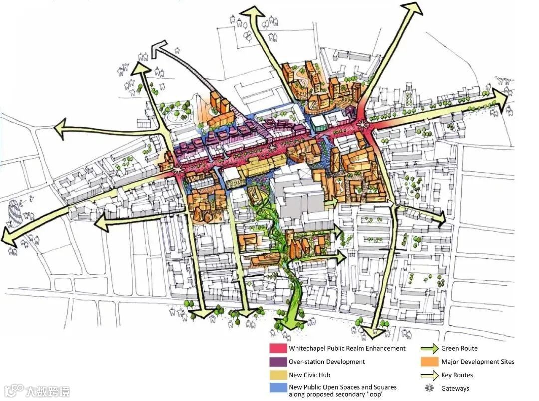 在TOD开发过程中,会在周边街区进行改造,十分注重设置连续、集约的开放空间,利用人行步道、公共空间节点等串联商业商务、休闲娱乐等功能区块。