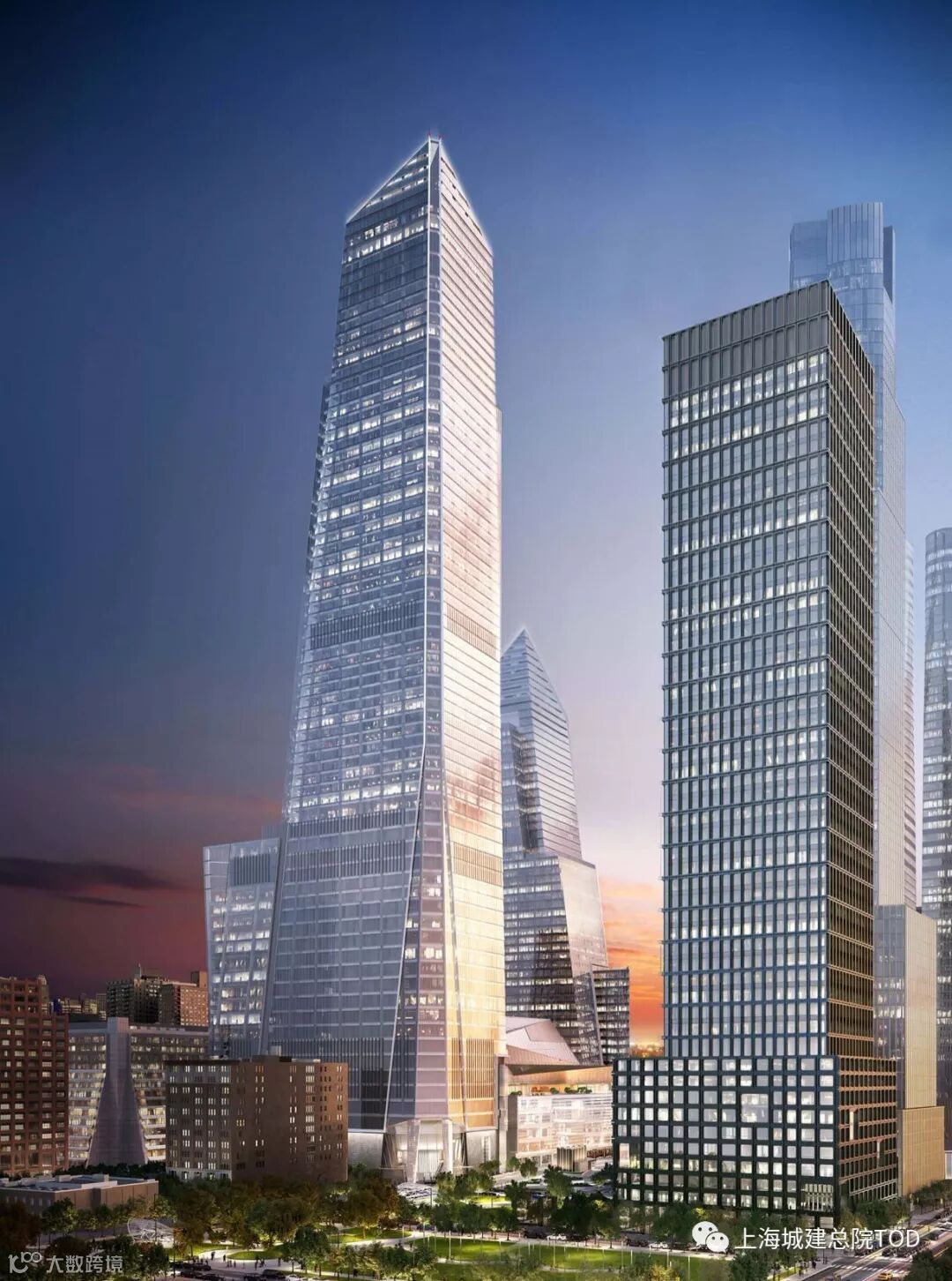 55 Hudson Yards - 致敬纽约标志性建筑设计师:A. Eugene Kohn of KPF 55 Hudson Yards是一个130万平方英尺的办公楼,位于哈德森公园的西南角。该建筑将站立在780英尺高(238米),其入口位于7号地铁站对面。塔楼十楼设有俯瞰着公园的户外露台。其立面设计,是对一批纽约标志性建筑的致敬,其中包括复兴的高线区、SoHo区大楼的人造铸铁立面以及早期现代主义。在外部,窗框的哑光金属和阶梯式铰链呈现出强烈而坚固的外观,而内部的落地窗最大化加强内部光线。 周边开发大环境Hudson River Park & Boulevard-美国最长河滨公园 & 公园大道承包商:特纳建筑公司景观设计:Michael Van Valkenburgh Associates Hudson RiverPark拥有着美国最长的河滨公园的称号,也是开发商自中央公园建成以来在曼哈顿进行建设的最大的开放空间项目。作为新Hudson Yards区的一个基本元素,将帮助该地区从一个荒凉的工业区转变为一个充满活力,适合步行的综合区。公园将成为这个新建社区中心的绿色中心,通过每个新设计的东西街道入口,公园将为当地居民,工人和游客提供急需的开放空间。