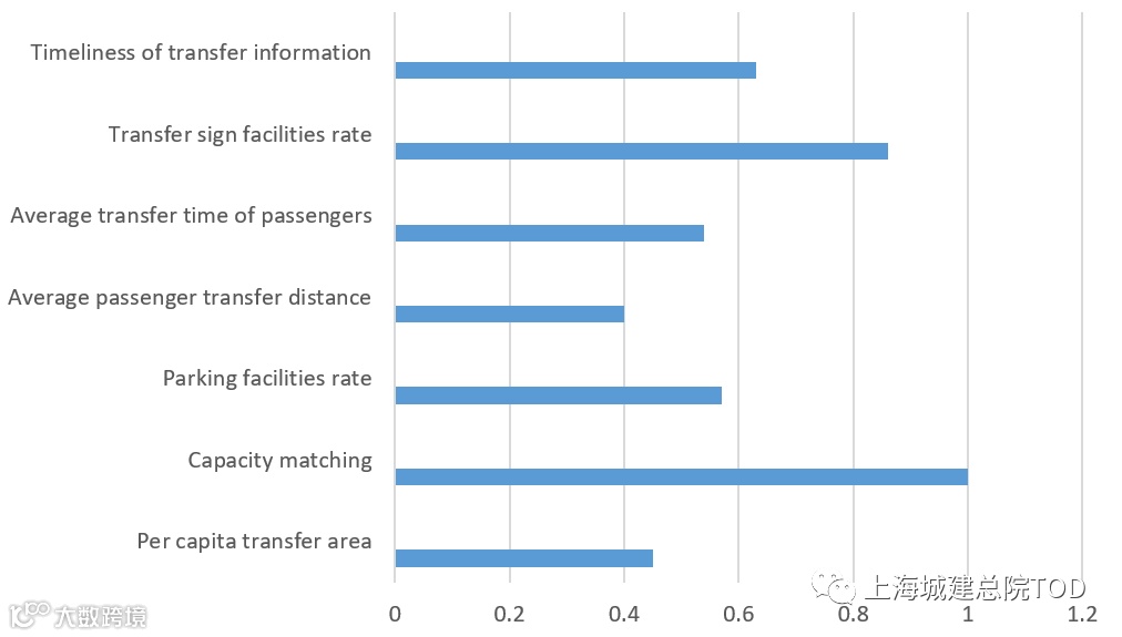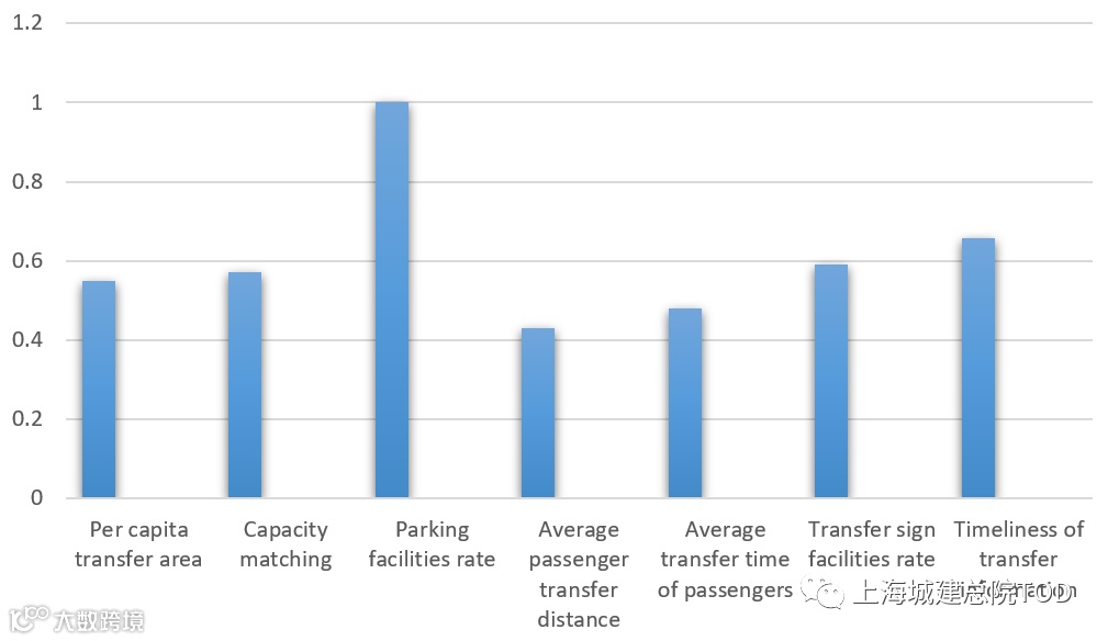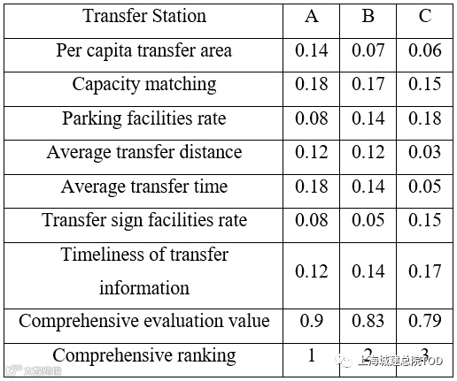 Per capita transfer area, parking facilities rate, transfer sign facilities rate and transfer information timeliness are positive indicators, and the rest are negative indicators. Finally, the evaluation value, comprehensive value and ranking of each evaluation object under each index are calculated, as shown in Table 2.