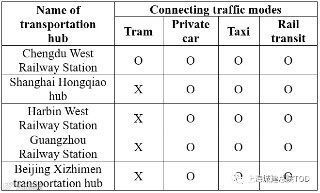 Table 1. Connection mode of major transportation hubs.