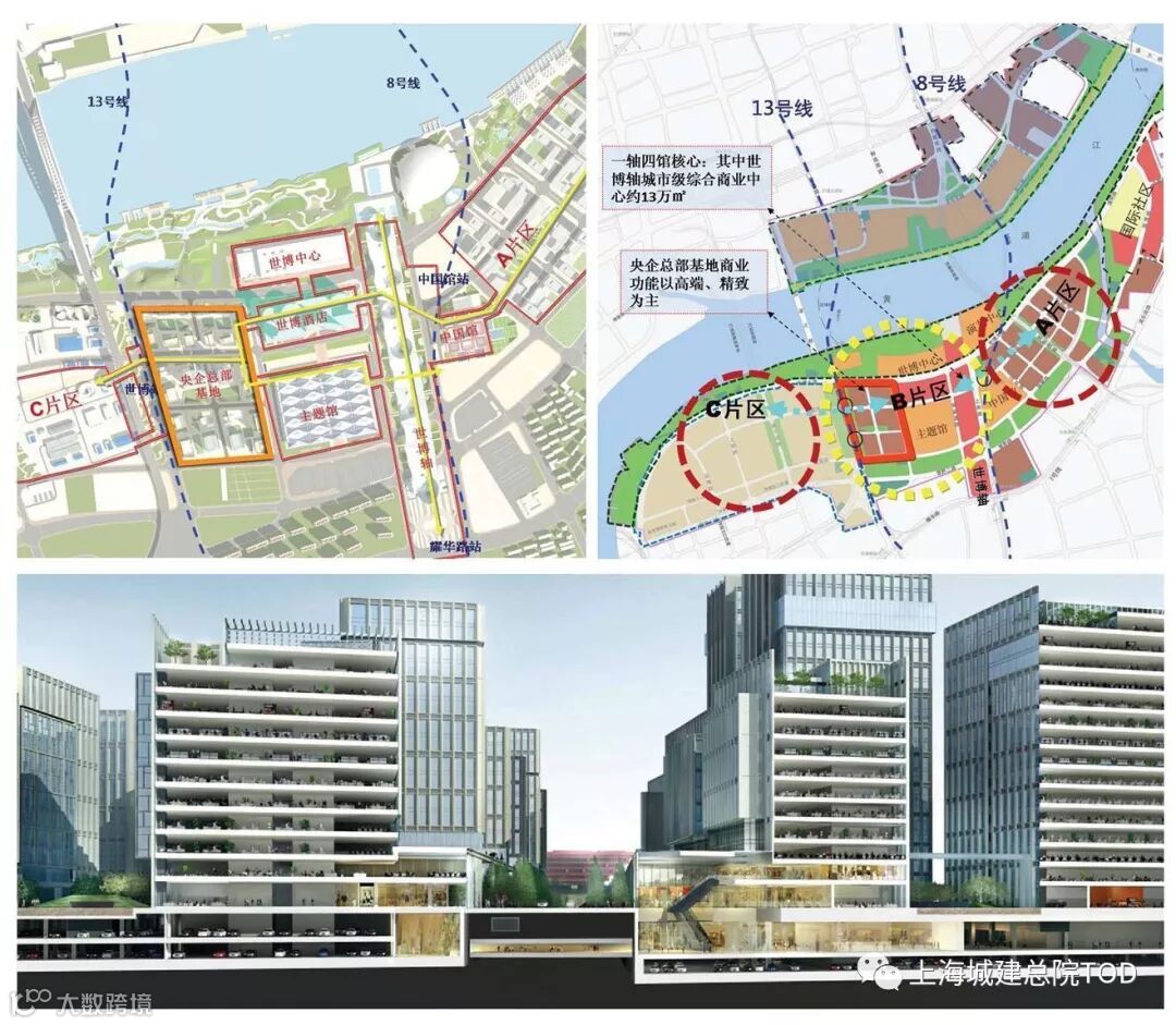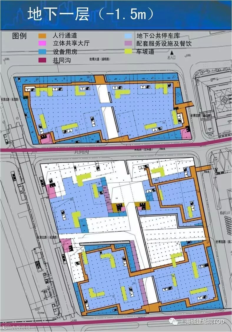 设计初衷是使B片区成为连接A片区和C片区的桥梁,打通整个世博片区的地下空间。