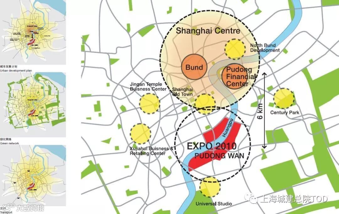依托世博园、黄浦江两岸滨水城区的二次开发,形成多中心的商务商业区的格局,发展成为国际经济、金融、贸易中心的核心载体。