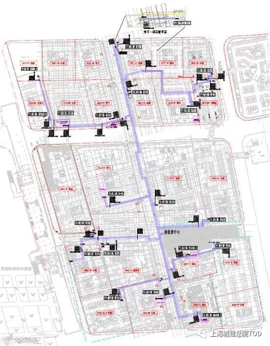 根据地区规划特色,地面功能,及公共空间的设置,形成地上地下综合一体开发的布局方案。