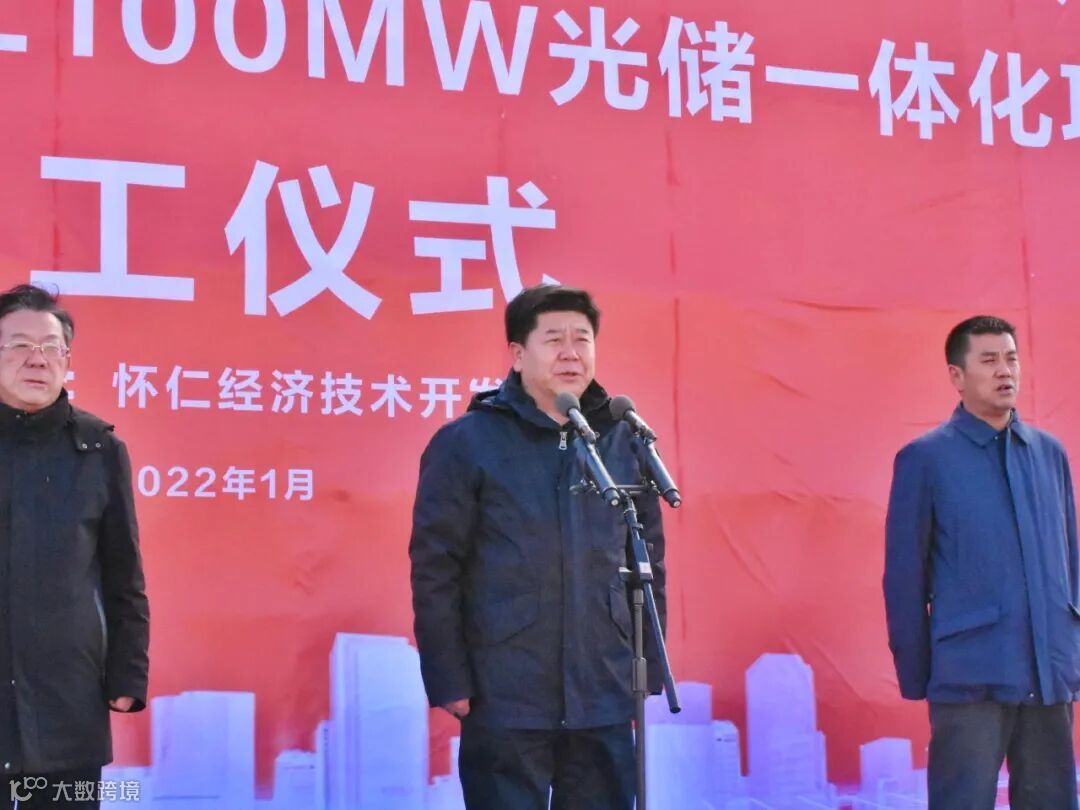 2022年1月14日、15日,公司朔州新能源产业基地右玉、怀仁两地各100MW光储一体化项目开工。公司党委委员、副总经理赵凌伟出席仪式并致辞。怀仁市市委书记丁裕,怀仁市四大班子领导出席怀仁项目开工仪式。右玉县副县长魏斌出席右玉项目开工仪式。