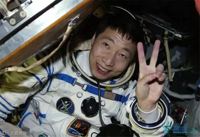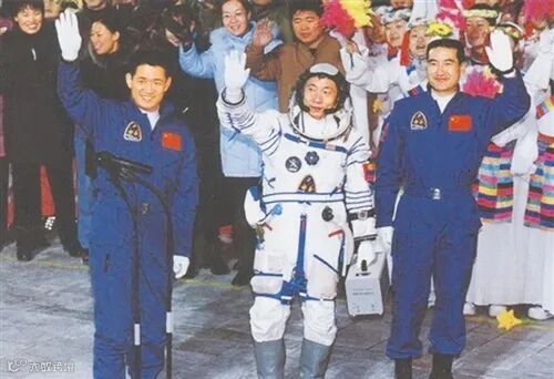 航天员杨利伟在鲜花和掌声的簇拥之下