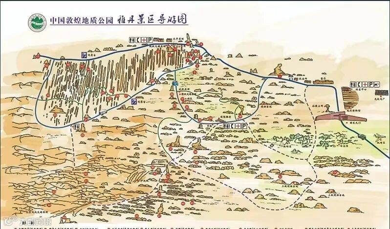 注:敦煌雅丹世界地质公园周边景点示意图。