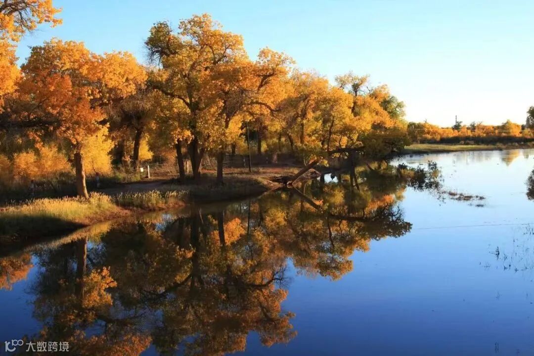 由大漠田园、水境胡杨、弱水河畔、沙漠驿站、红柳湾一起组成壮观的胡杨林,共同构成一幅自然画卷