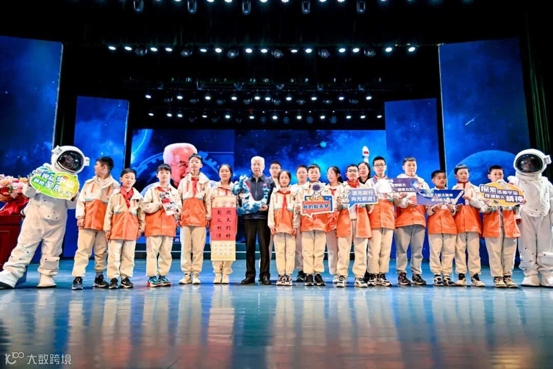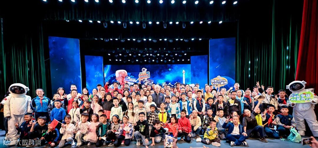 讲座的最后,龙乐豪院士也表达了对航天后辈们的期待:“高速发展的当今世界,科技竞争,是一个大国崛起的重要决定因素,也是大国之间博弈的焦点,所以,要从小培养孩子们爱科学,爱祖国,德智体美劳全面发展”,并与现场小朋友们进行合影留念。来自常州的研学团队也给龙乐豪院士送上了了纪念品以及亲手写的对联“航天精神 薪火相传”