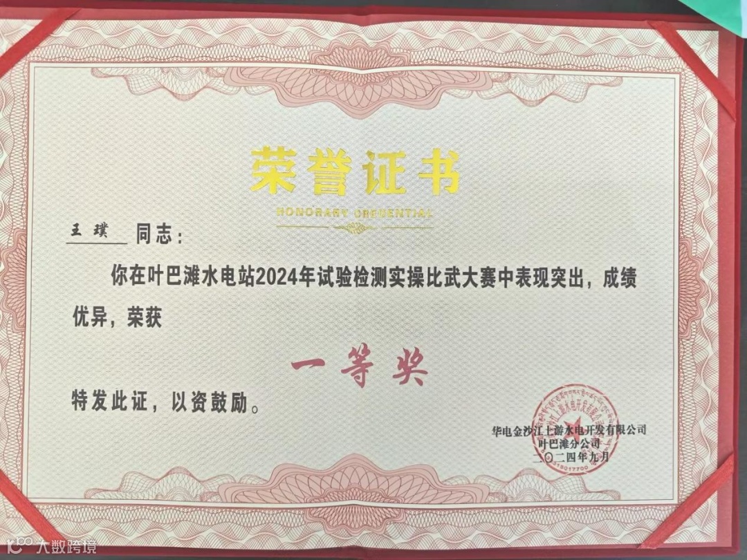10月6日,在叶巴滩水电站2024年试验检测实操比武大赛中,王璞荣获一等奖。
